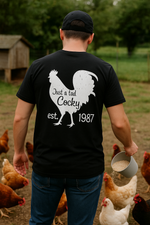 Keywords: Southern graphic tee, rooster shirt, Bella Canvas chicken shirt, Swamp Cracker apparel, funny country shirt, cocky rooster t-shirt, rural lifestyle clothing, farm animal shirt, men’s outdoor shirt