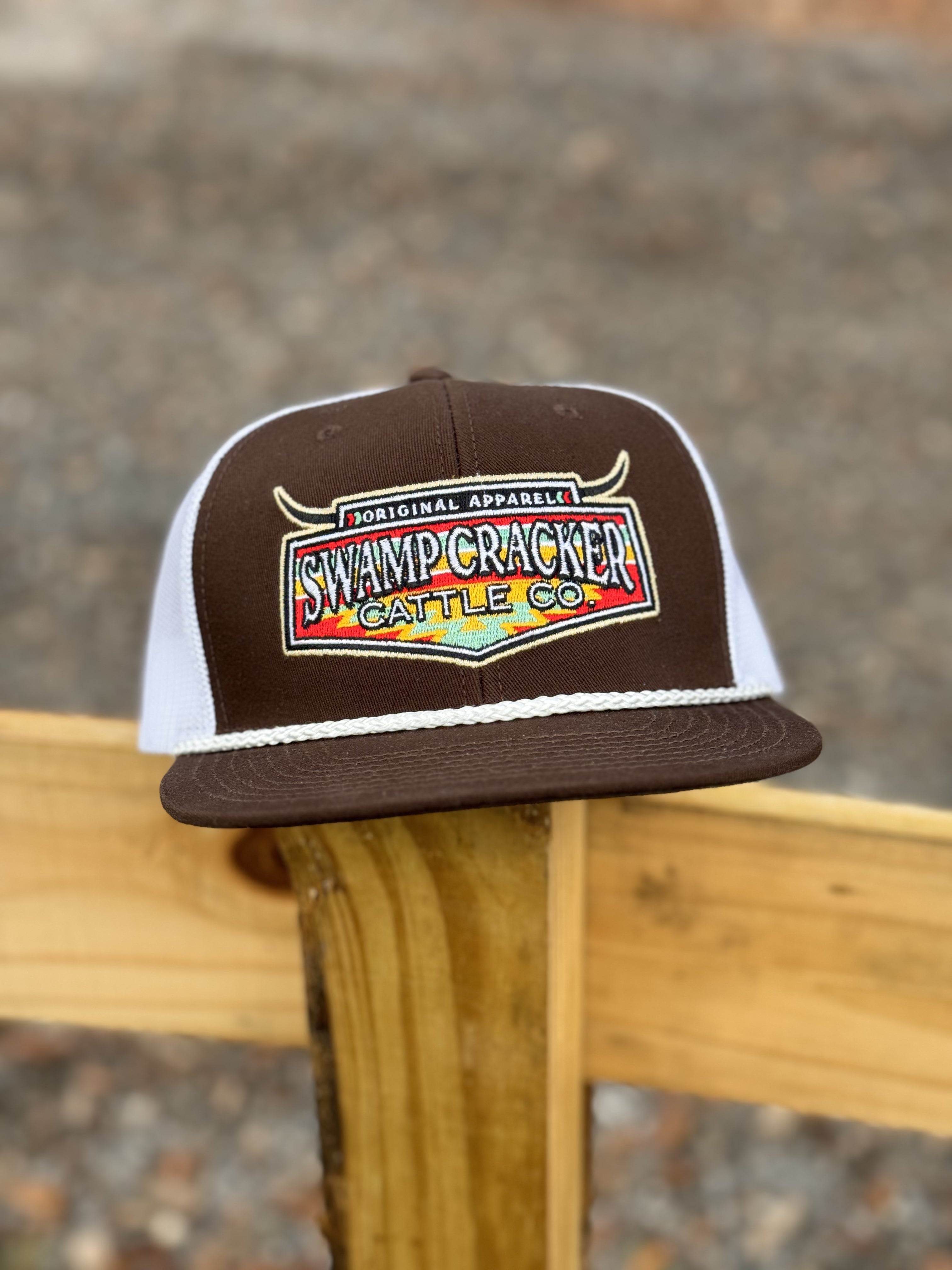 The structured crown and flat brim provide a comfortable and stylish fit, while the adjustable snapback closure ensures a perfect fit for all head sizes. The Swamp Cracker Cattle Co logo is embroidered on the front, adding a touch of authenticity to this one-of-a-kind hat.